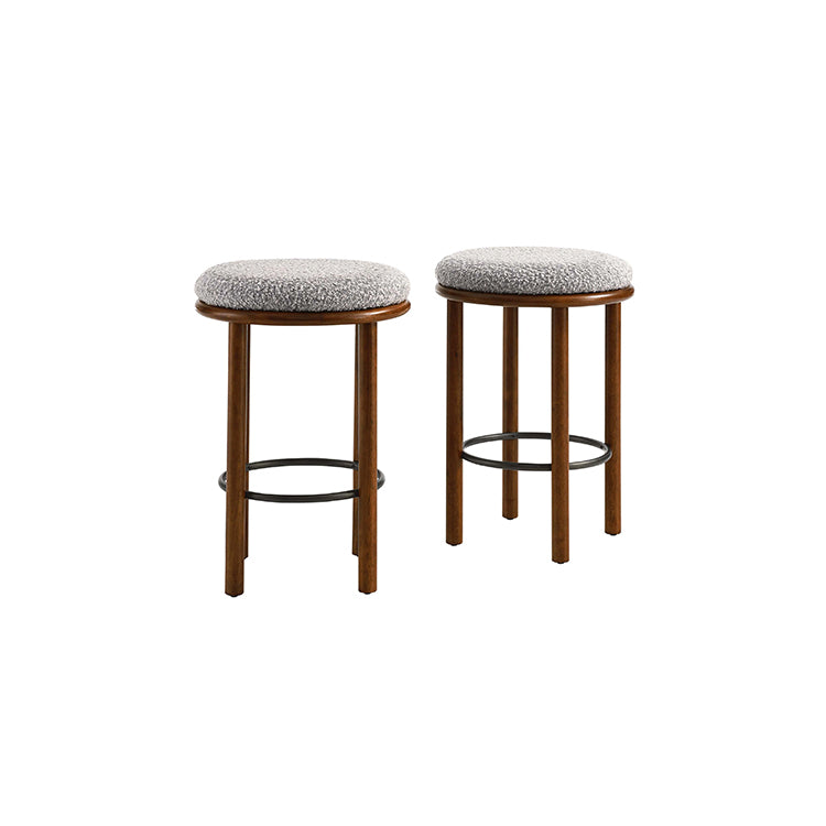 Elevate your space with the Pebble Boucle Fabric Stools—a dynamic duo that brings comfort and style to your bar or kitchen. These backless beauties feature a cloud-soft boucle seat wrapped around sturdy rubberwood legs, creating the perfect perch for everything from morning coffee to evening cocktails. The natural finish showcases gorgeous wood grain details, while the integrated metal footrest keeps your feet happy during those long hangout sessions. With plush foam padding and a playful texture that begs to be touched, these stools transform any gathering spot into an Instagram-worthy moment. Minimalist charm meets cozy comfort—what's not to love?