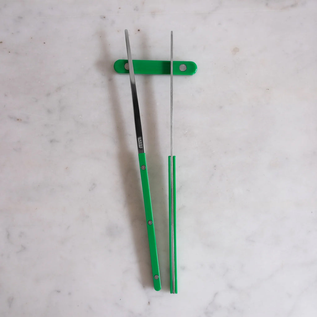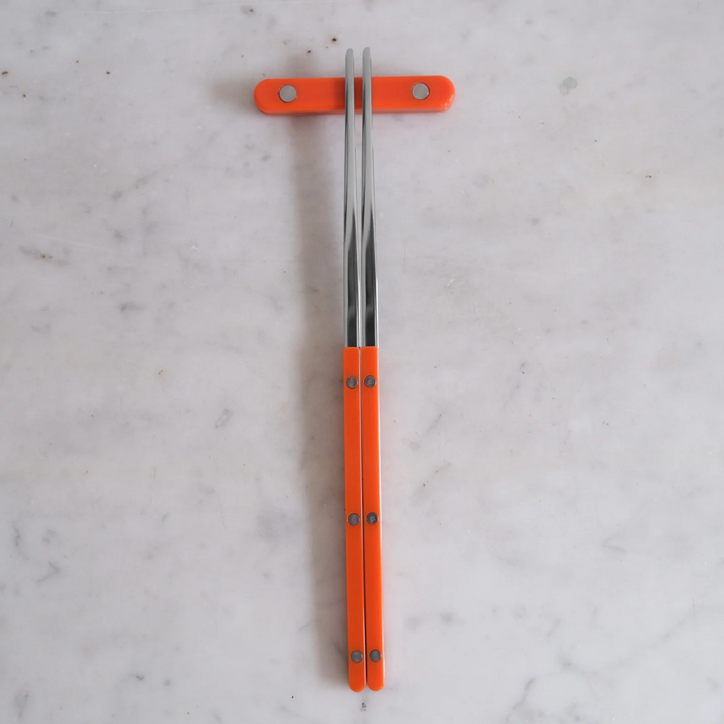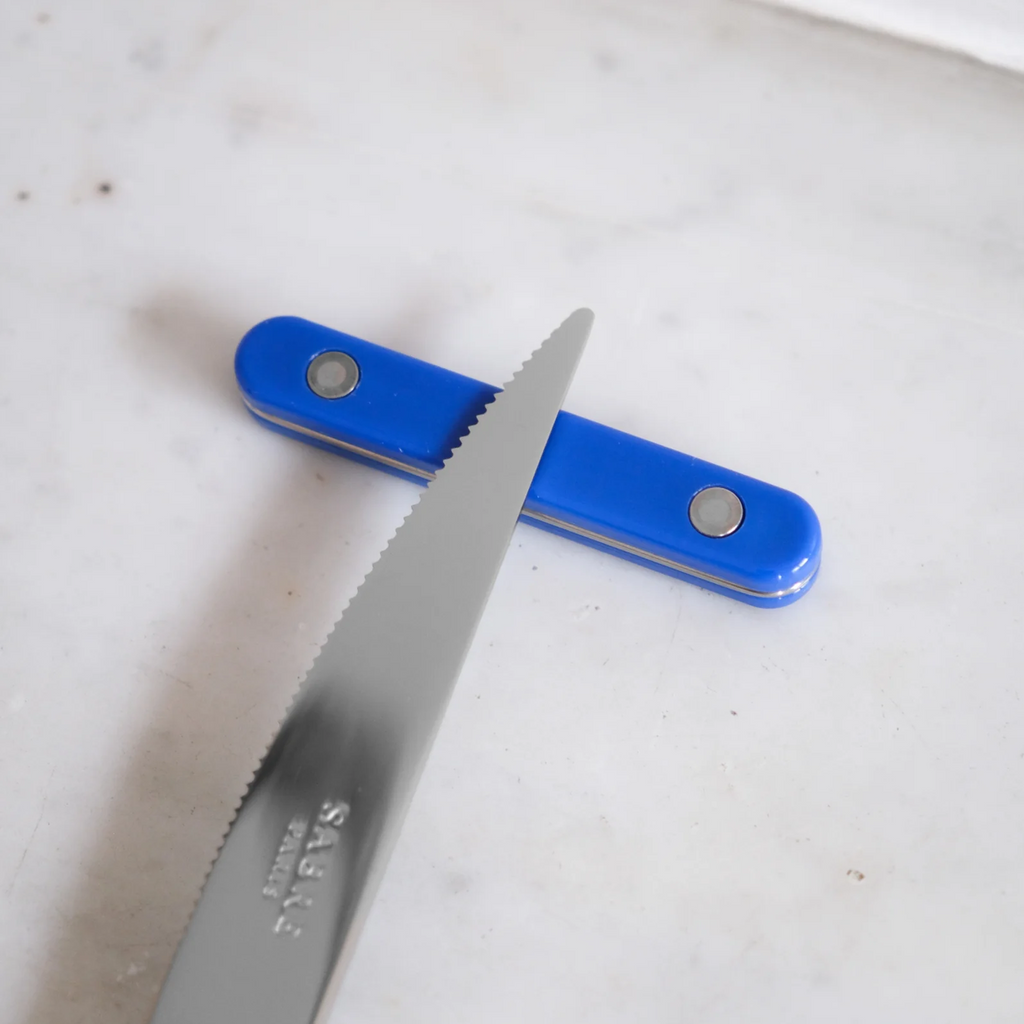 When designing this cutlery we wanted to faithfully capture the atmosphere while adding a modern touch: the styling is simple, the rivets are visible, while the colours and materials stand out nicely. From red to blue, not forgetting the superb materials with horn or tortoise effects. Available with gloss or vintage finishes, we’re sure you’ll enjoy this collection, which is designed to be both traditional and contemporary at the same time.