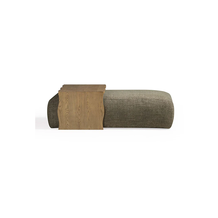 Wavy Ottoman elevates any space with its plush, wavy-edged silhouette and refined basketweave fabric. Designed for versatility, it features hidden caster wheels for effortless movement and an integrated bridge table that glides smoothly side to side. This elegant piece combines texture, function, and style, making it a sophisticated addition to your living area.